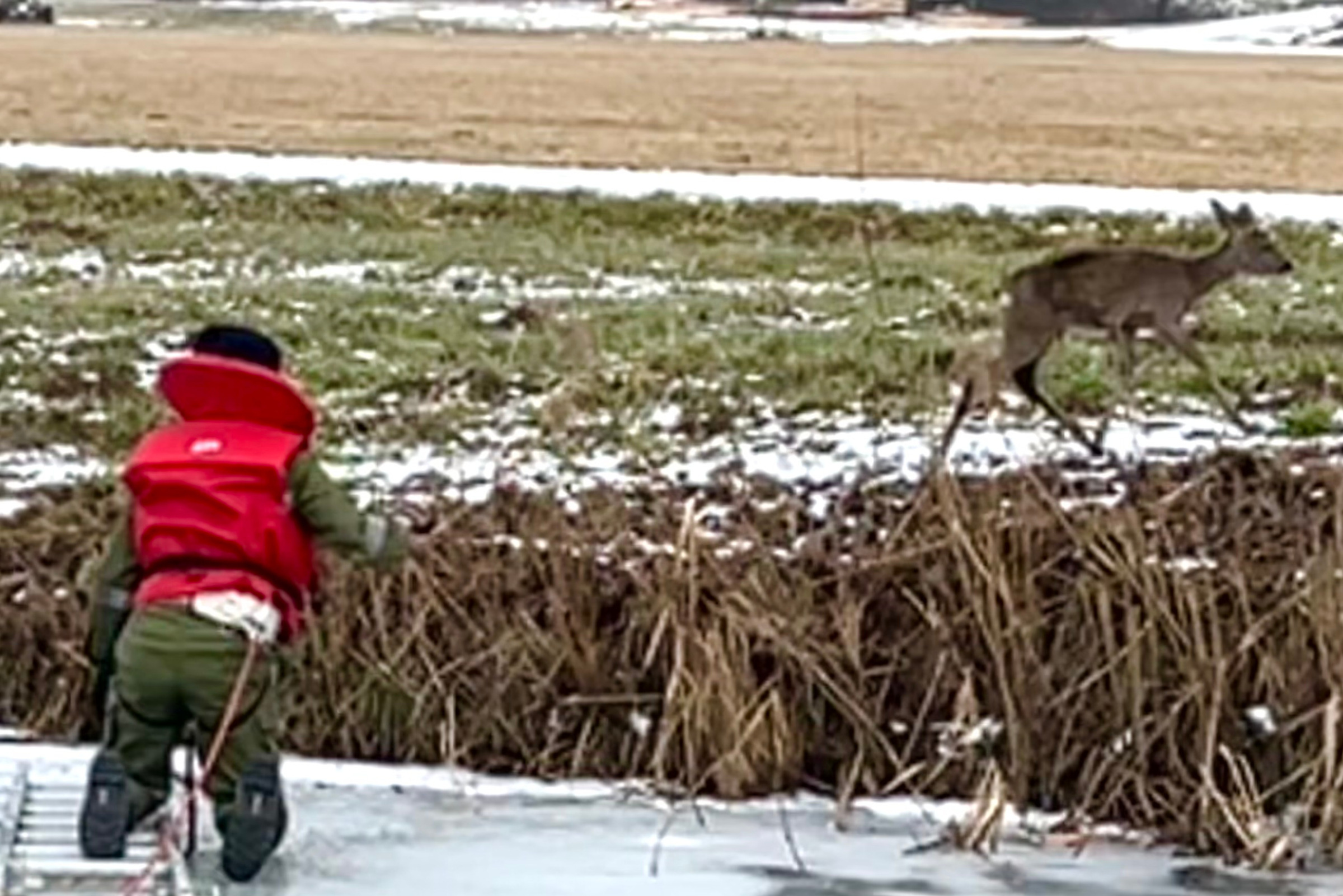 Telefonisch wurden wir am Vormittag des 18. Jänner 2026 von einer Spaziergängerin über ein hilfloses Reh auf der zugefrorenen Pinka informiert. Wir rückten mit dem Tanklöschfahrzeug und sechs Mitgliedern aus.