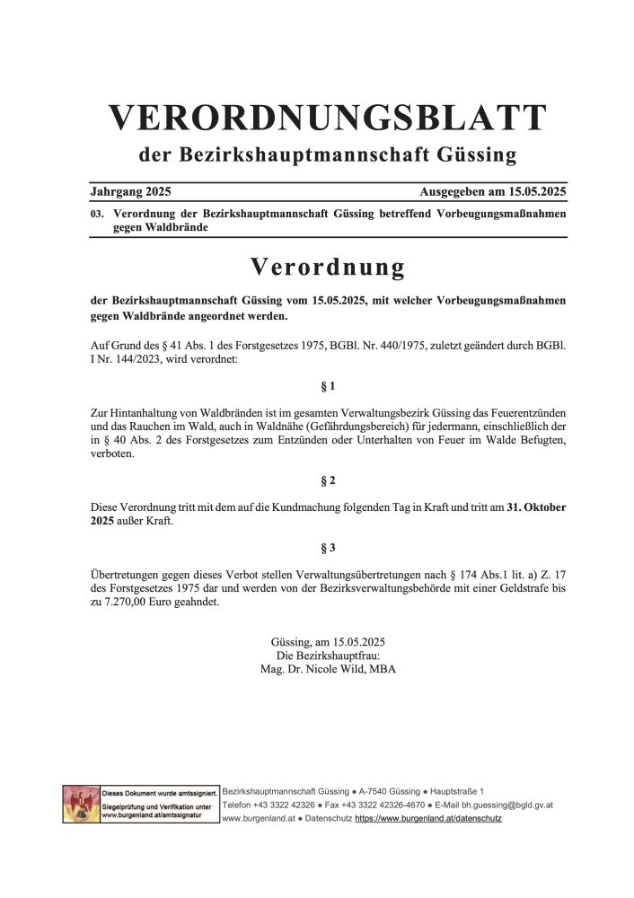Verordnung der BH Güssing: Waldbrand (pdf)
