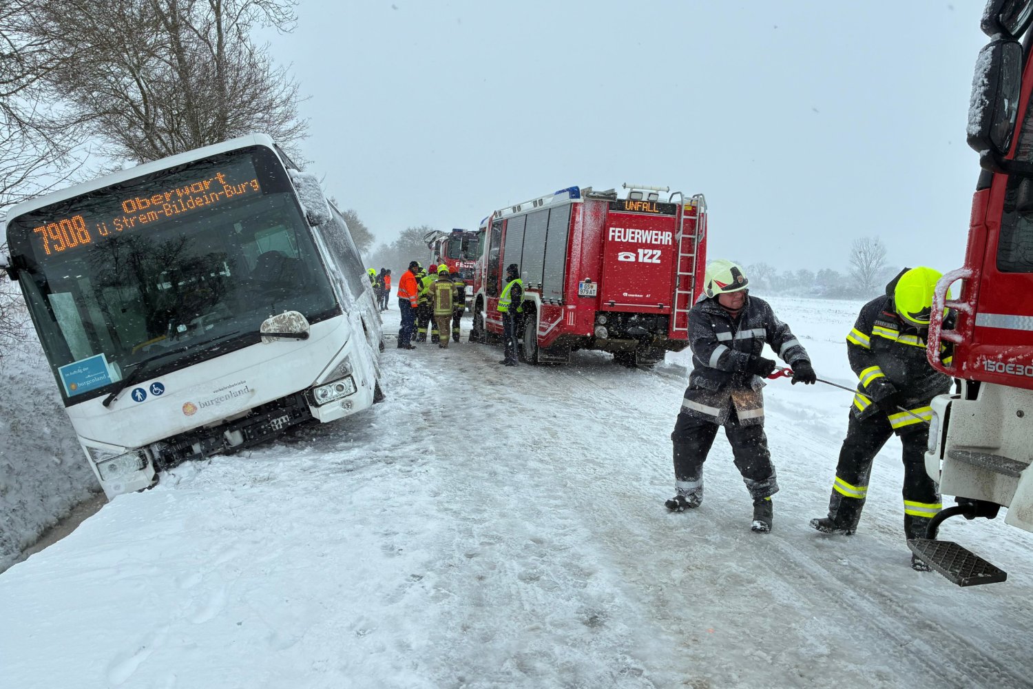 Gemeinsam mit den Feuerwehren Eberau und Güssing führten wir am 20. Feber 2026 eine anspruchsvolle Busbergung auf der Landesstraße L395 durch. Bei tiefwinterlicher Fahrverhältnisse war ein Bus von der Fahrbahn abgekommen und im Straßengraben zum Stillstand gekommen und auf der Bodenplatte aufgesessen.